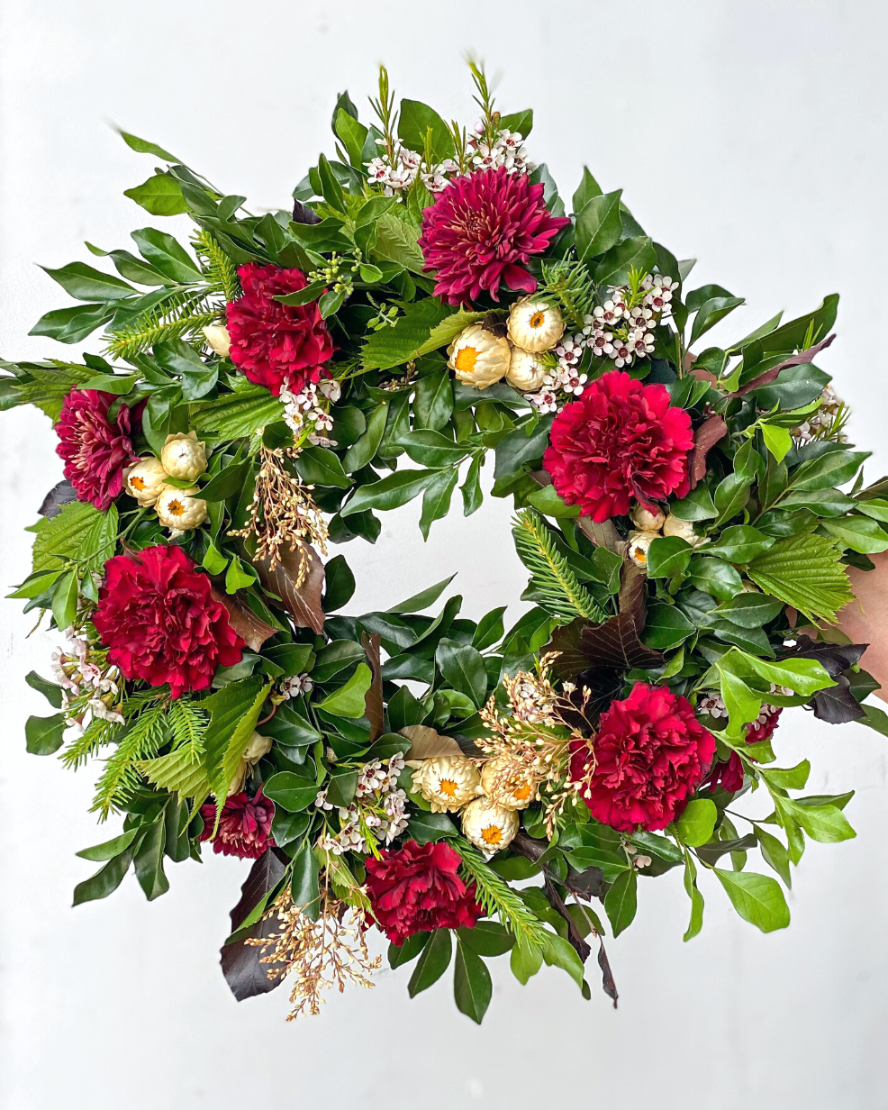 Jingle all the way… with a beautiful fresh flower Christmas Wreath!
