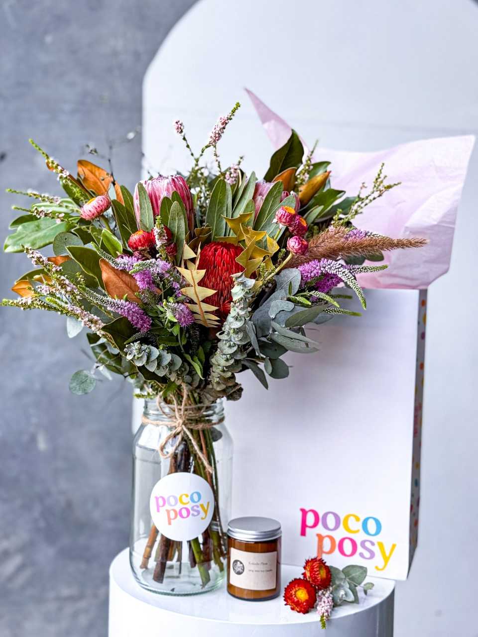 Poco Native Posy + Pickle Jar Vase + Kakadu Plum Candle + Poco Posy Gift Bag – the perfect combo for the wild heart ♡ Flowers will vary based on the day xx